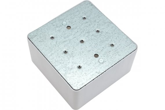Конструкция из двух стальных пластин позволяет надежно крепить коробку к поверхности стен и потолков;