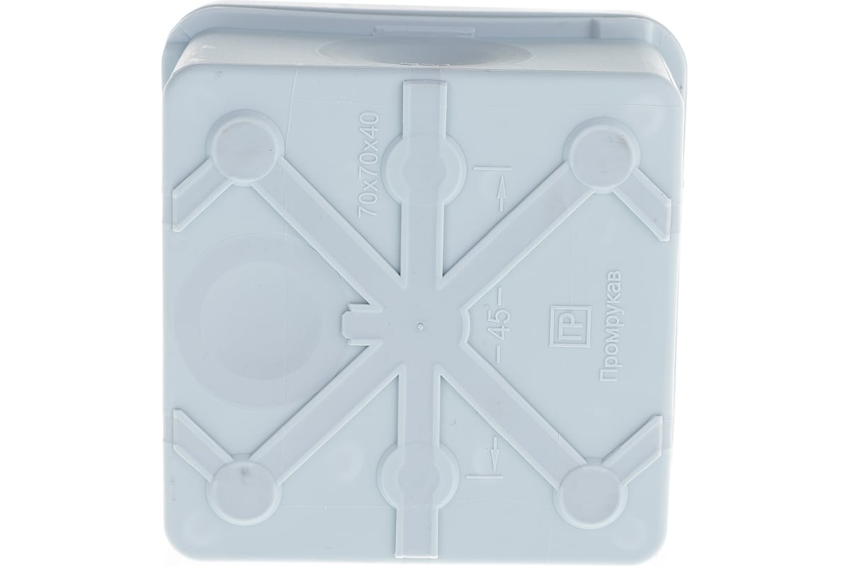 Распределительная двухкомпонентная Коробка Промрукав для прямого монтажа HF 70х70х40 60-0200 подходит для прокладки на открытом воздухе.