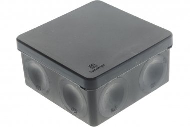 Распределительная двухкомпонентная коробка Промрукав для прямого монтажа HF, черная 100х100х50 60-0300-9005 подходит для прокладки на открытом воздухе.