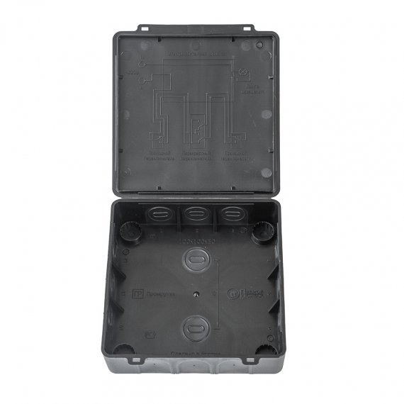 Коробка распределительная 60-0302-9005 для прямого монтажа двухкомпонентная безгалогенная (HF) черная 100х100х30 (48 шт/уп) Промрукав