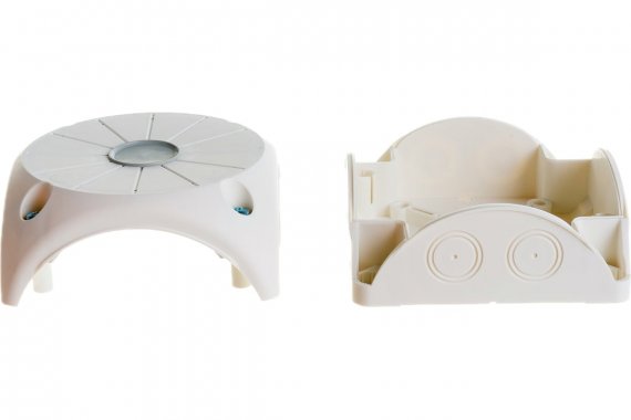 Двухкомпонентная крышка с эластичной мембраной для ввода кабеля камеры и непрерывным контуром уплотнителя по периметру и в местах крепления саморезов камеры обеспечивают высокий уровень герметичности коробки.