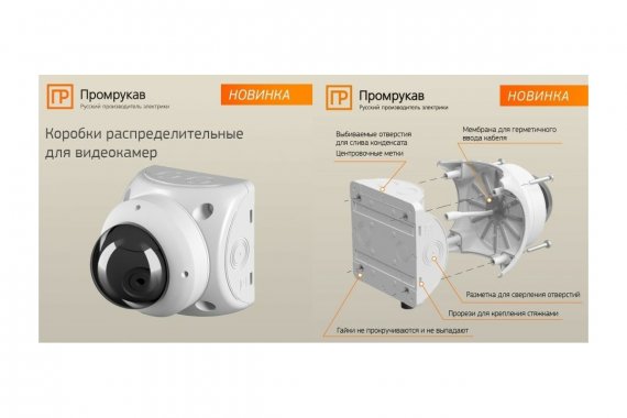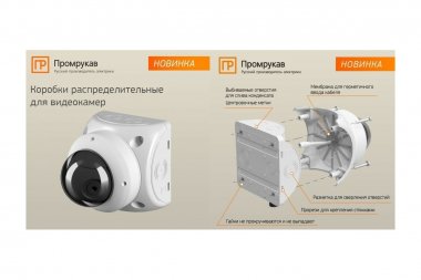 Двухкомпонентная крышка с эластичной мембраной для ввода кабеля камеры и непрерывным контуром уплотнителя по периметру и в местах крепления саморезов камеры обеспечивают высокий уровень герметичности коробки.