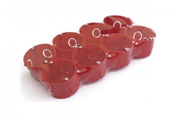 Установочные коробки (подрозетники) позволяют осуществлять монтаж электрических розеток, выключателей, диммеров и других электроустановочных изделий на винтах или металлических захватах. Подрозетники подходят для всех типов стен. Наличие соединителя, обеспечивает возможность блочного монтажа. Удобство монтажа обеспечивается конструкцией вводов для кабеля, которые можно выломать, без использования дополнительного инструмента. В определенных случаях будет удобна упаковка по 8 шт/уп.