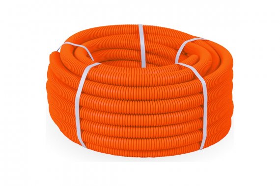 Гофрированная легкая труба ПВХ Промрукав 350 Н оранжевая с зондом д25мм 50м PR01.0132 подходит для защиты изолированных проводов и кабелей от механических повреждений и агрессивного воздействия окружающей среды.