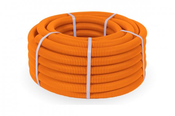 Гофрированная легкая труба ПВХ Промрукав 350 Н оранжевая с зондом д32мм 25м PR01.0133 подходит для защиты изолированных проводов и кабелей от механических повреждений и агрессивного воздействия окружающей среды.