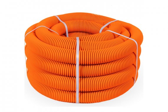 Труба гофрированная ПВХ легкая 350 Н оранжевая с/з d40 мм (15 м/960 м уп/пал) Промрукав