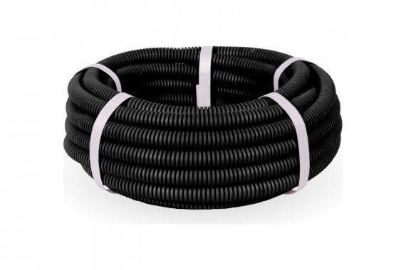Труба гофрированная ПА безгалогенная (HF) стойкая к ультрафиолету черная с/з d20 мм (10м/уп) Промрукав
