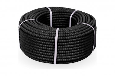 Труба гофрированная ПП легкая 350 Н безгалогенная (HF) стойкая к ультрафиолету черная с/з dвн 14,1 мм, dнар 20 мм (25м/2700м уп/пал) Промрукав