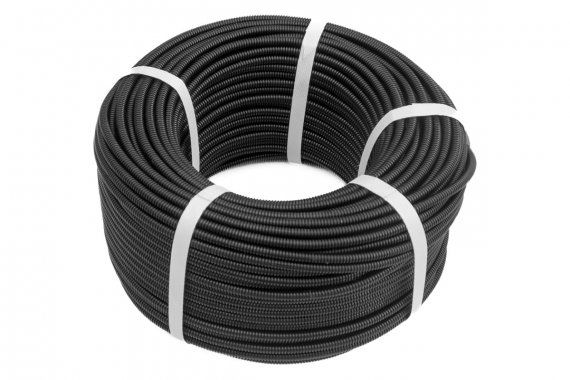 Труба гофрированная ПП легкая 350 Н безгалогенная (HF) стойкая к ультрафиолету черная dвн 7,0 мм, dнар 10,0 мм (50м/уп) Промрукав