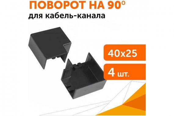 Поворот на 90 градусов 40х25 черный (4 шт/комп) Промрукав