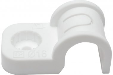 Крепеж-скоба пластиковая односторонняя для прямого монтажа атмосферостойкая белая в п/э d32 мм (25шт/375шт уп/кор) Промрукав
