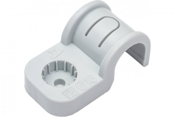 Крепеж-скоба пластиковая односторонняя для прямого монтажа атмосферостойкая серая в п/э d16 мм (10шт/700шт уп/кор) Промрукав