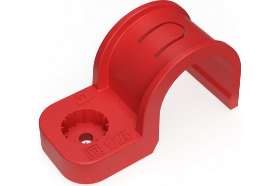 Промрукав PR13.2059 Крепеж-скоба пластиковая односторонняя для прямого монтажа атмосферостойкая красная в п/э d25 мм