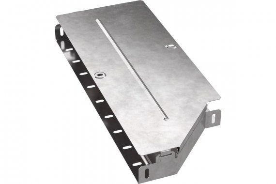 Аксессуары изготовленные из стали с защитным покрытием по методу Сендзимира – это изделия, на которых защитное цинковое покрытие было нанесено на листовую сталь перед изготовлением. Толщина защитного покрытия варьируется от 10 до 22 мкм. Климатическое исполнение изделий УХЛ2, что предусматривают эксплуатацию в помещении и под навесом, при температуре эксплуатации от -80 до +150°С. Переходник левый предназначен для перехода с одной ширины лотка на другую.