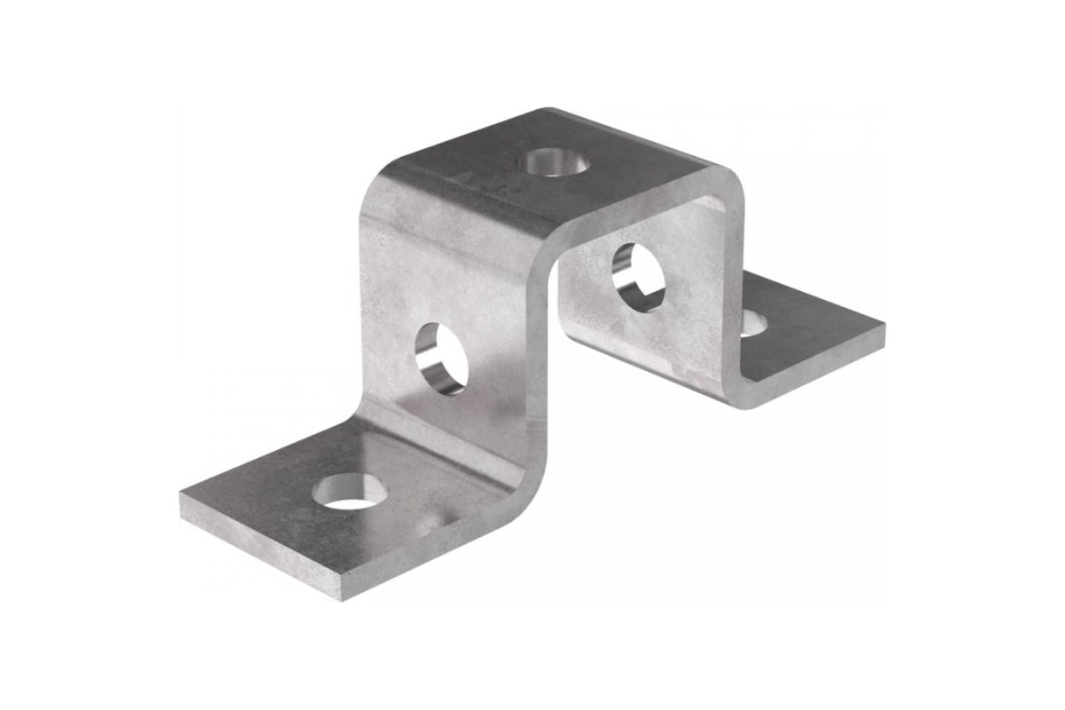 Пластина П-образная, с пятью круглыми отверстиями, диаметром 13 мм, размерами 40х50х135 мм и толщиной 5 мм, вес 0,30 кг. Используется для соединения между собой двух STRUT-профилей без использования сварки, с помошью специальных монтажных крепежей. Защищена от коррозии цинковым покрытием, нанесенным методом горячего цинкования.