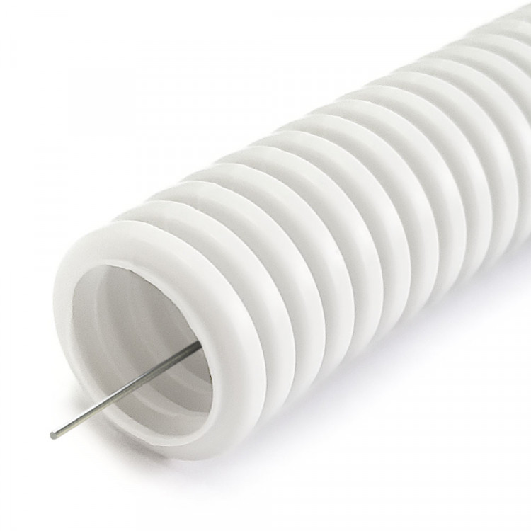 Труба гофрированная ПЛЛ легкая 350 Н безгалогенная (HF) негорючая (НГ) белая с/з д32 (25м/1375м уп/пал) Промрукав